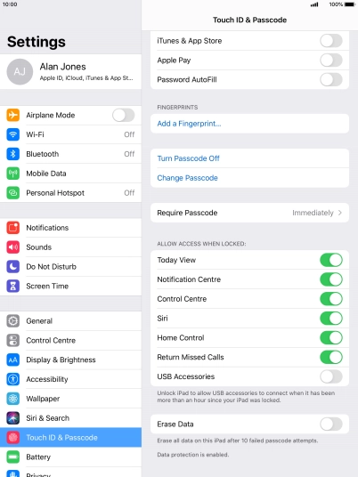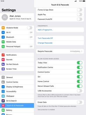 4. 4. Turn off use of lock code