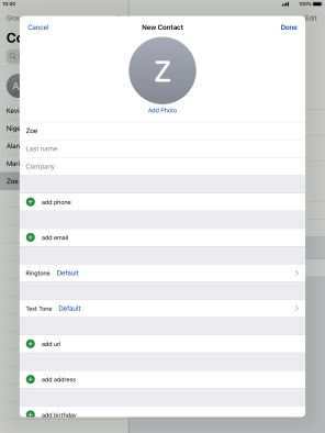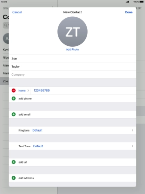 Press First name and key in the first name.