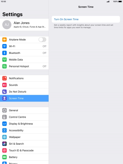 Using Screen Time you can get an overview of how much you use your tablet and set time limits on the use of selected apps. To use the function, you need to turn on Screen Time.
