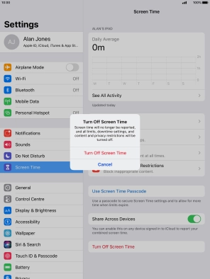 Press Turn Off Screen Time.