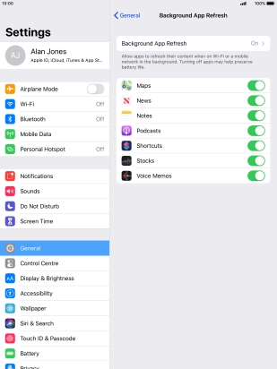 2 Turn background refresh of apps on or off