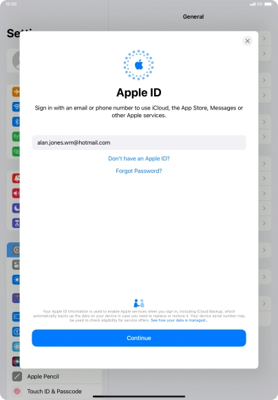 Activate Apple ID on your tablet