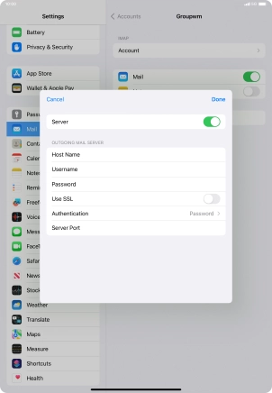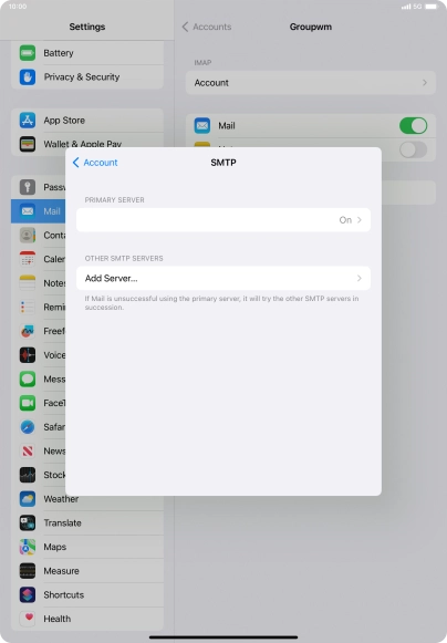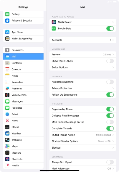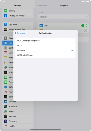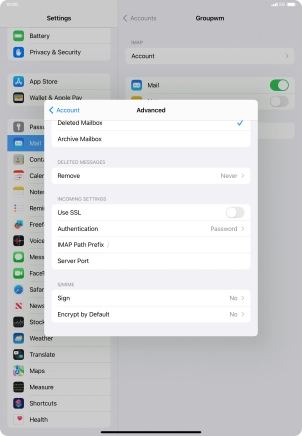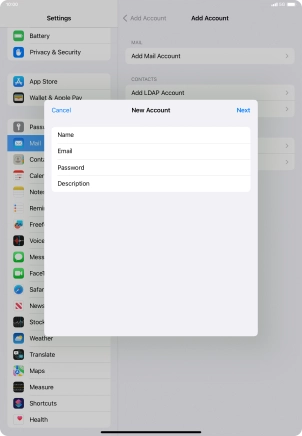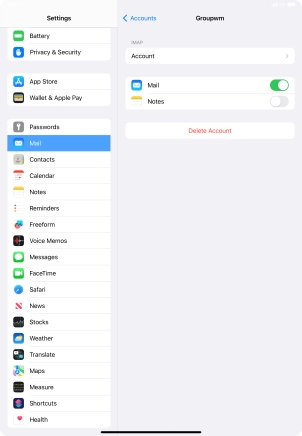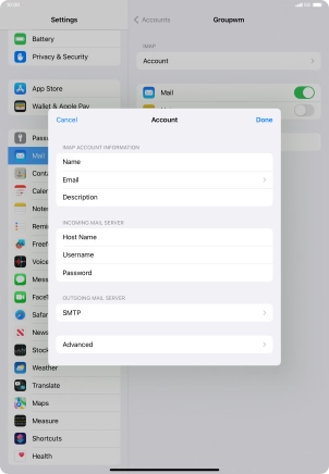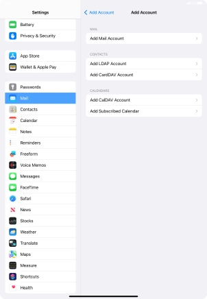 Press the required email account and follow the instructions on the screen to select settings for the specific account.