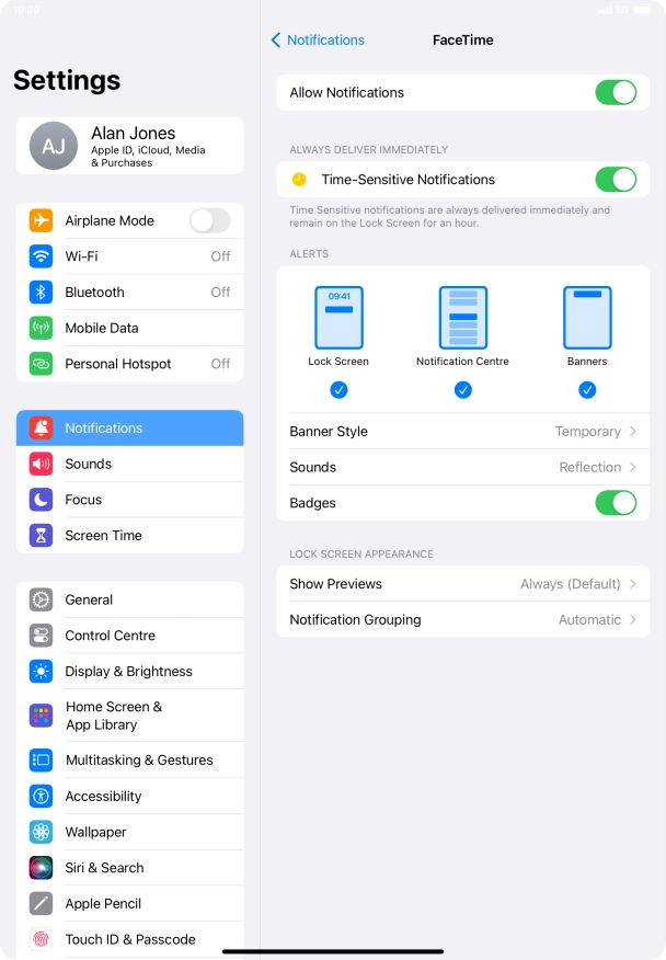 Press the indicator next to "Time-Sensitive Notifications" to turn the function on or off.