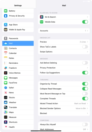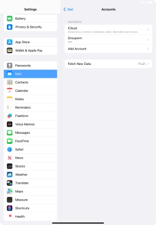 Press the required email account and follow the instructions on the screen to select settings for the specific account.