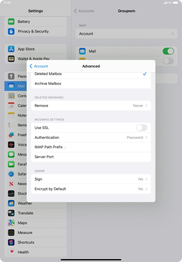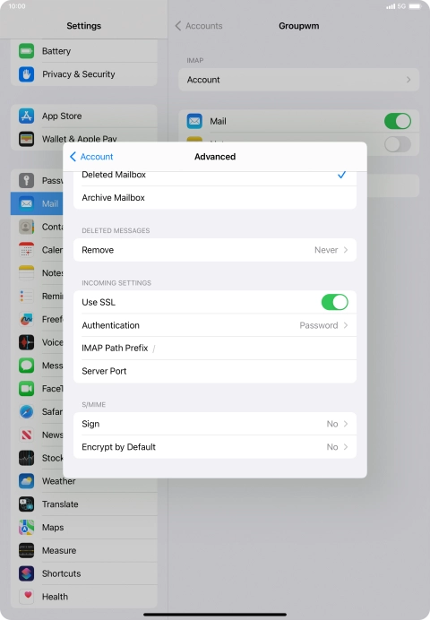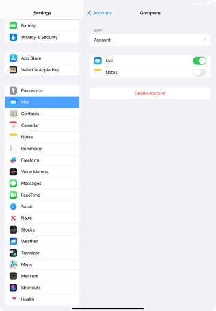 Press the name of the email account you've just set up.