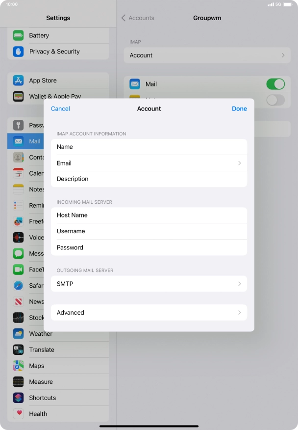 Press Username and key in the username for your email account.