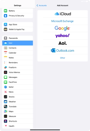 Press the required email account and follow the instructions on the screen to select settings for the specific account.