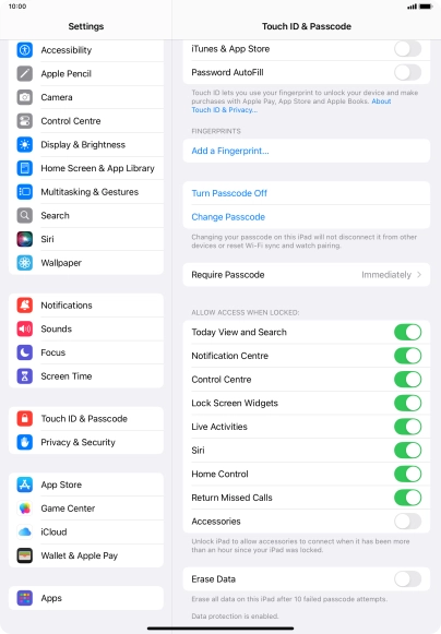 4. 4. Turn off use of lock code