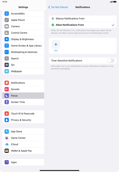 Press Apps and follow the instructions on the screen to select which apps you would like to receive notifications from when Do Not Disturb is turned on.
