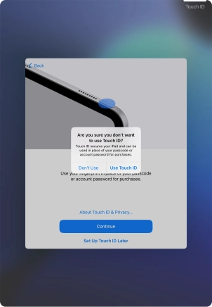 Follow the instructions on the screen to turn on use of Touch ID or press Set Up Touch ID Later.