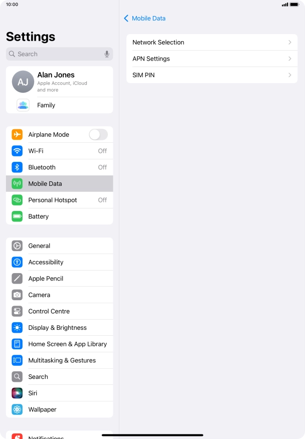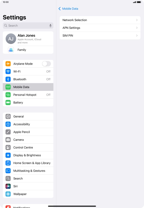 Press Mobile Data.