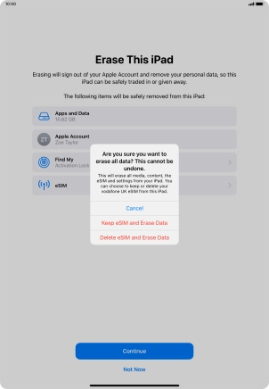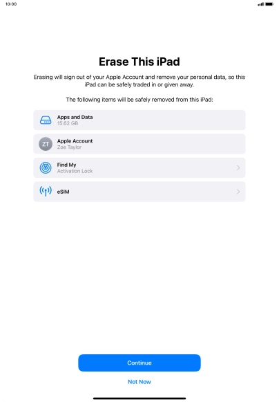 Key in the password for your Apple ID and press Turn Off. Wait a moment while the factory default settings are restored. Follow the instructions on the screen to set up your tablet and prepare it for use.