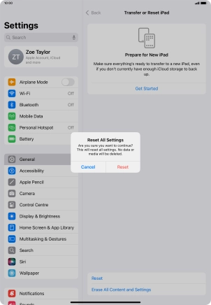 Press Transfer or Reset iPad.