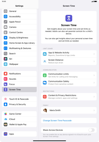 Press Screen Time and optionally select the required member of your family group.