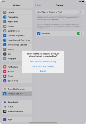 Press the indicator next to "Allow Apps to Request to Track" to turn the function on or off.