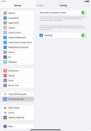 Press the indicators next to the required apps to turn tracking request for each app on or off.