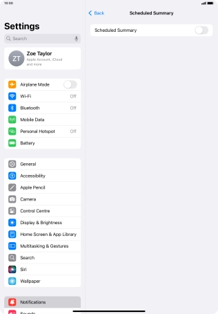 Press the indicator next to "Scheduled Summary" to turn on the function and follow the instructions on the screen to set the notification summary.