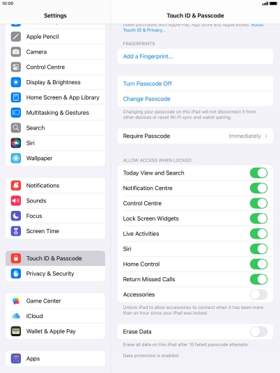 4. 4. Turn off use of lock code