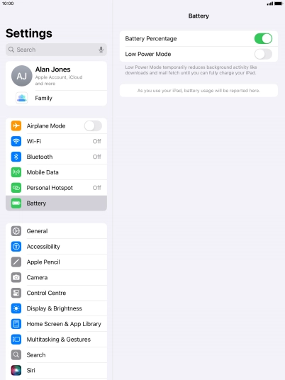Some functions on your tablet use a lot of power and therefore significantly reduce the battery life. You can reduce the power consumption by turning on low power mode.
