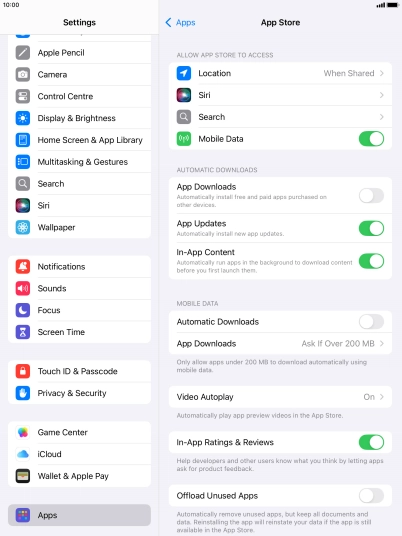 Press the indicator next to "Automatic Downloads" to turn the function on or off.
