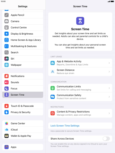 Press Screen Time and optionally select the required member of your family group.