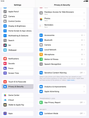 Press Privacy & Security.