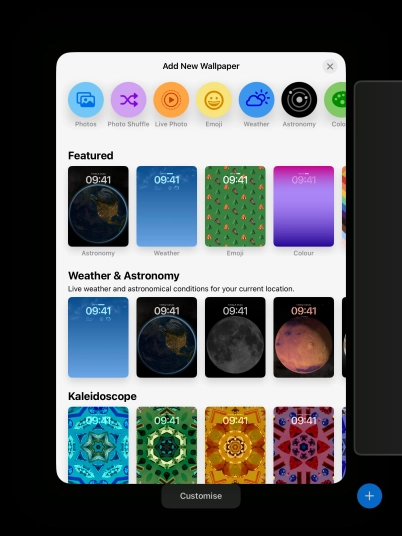 Press Customise and follow the instructions on the screen to customise the selected lock screen.