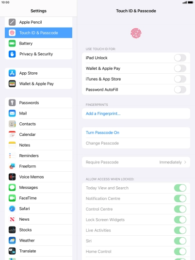 Press Turn Passcode On and key in a lock code of your own choice twice.