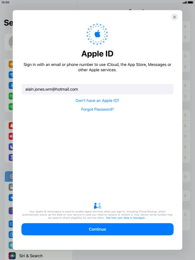Activate Apple ID on your tablet