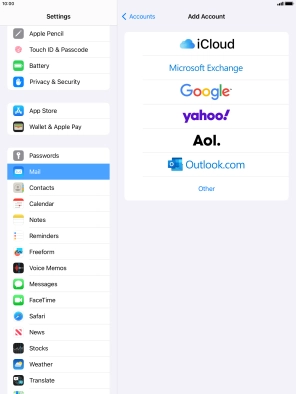 Press the required email account and follow the instructions on the screen to select settings for the specific account.