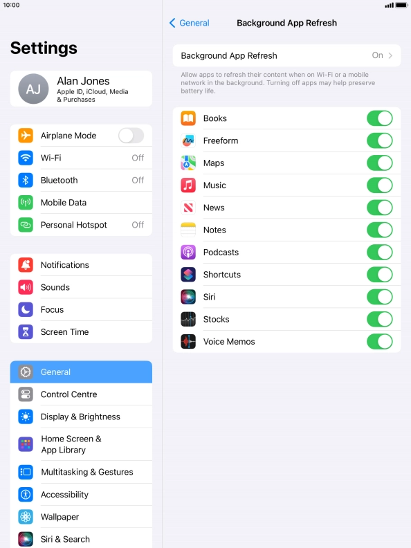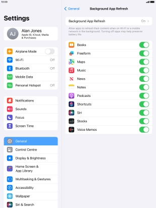 To turn on background refresh of apps using mobile network, press Wi-Fi & Mobile Data.