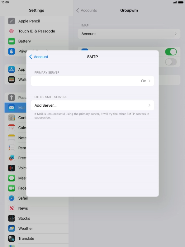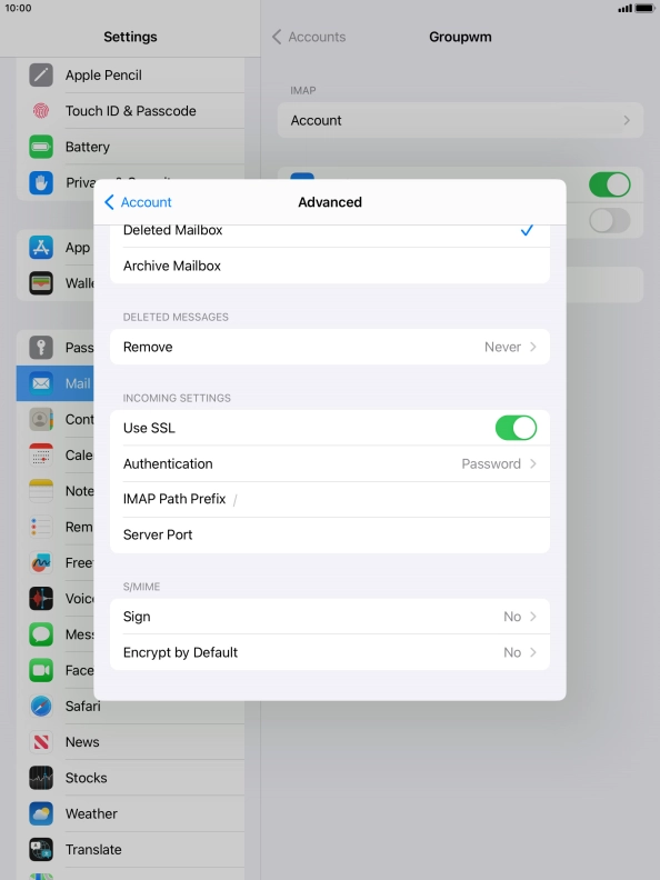 I can't send and receive email messages on my Apple iPad (9th Generation) iPadOS 17