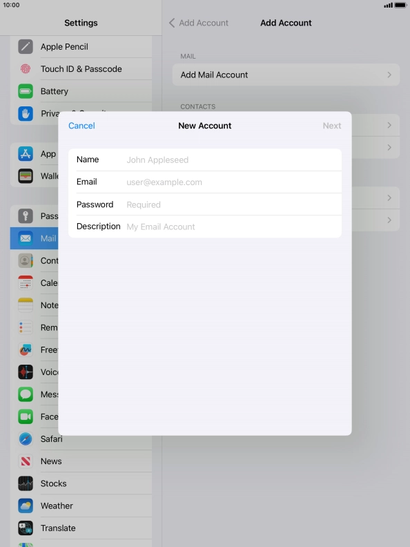 Press Add Mail Account.