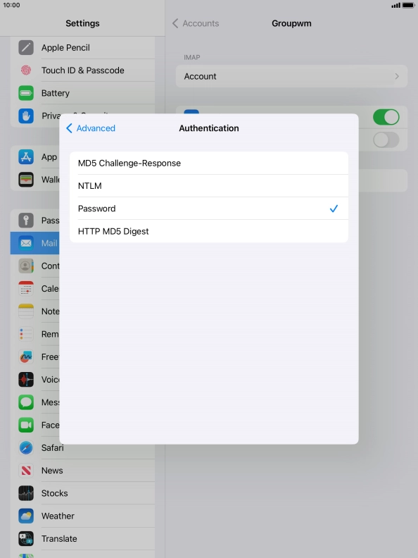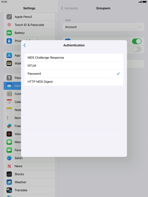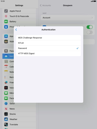 Press Password and key in the password for your email account.