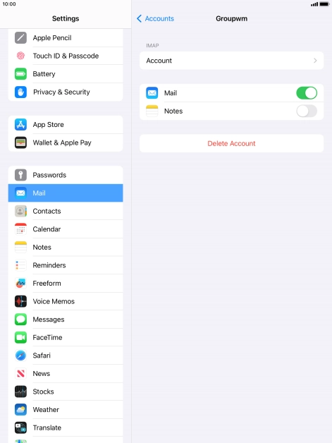 Press the name of the email account you've just set up.