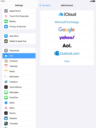 Press the required email account and follow the instructions on the screen to select settings for the specific account.