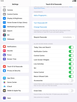 Press Turn Passcode On and key in a lock code of your own choice twice.