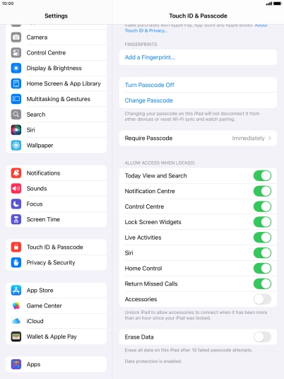 Press the indicator next to "Erase Data" to turn the function on or off.