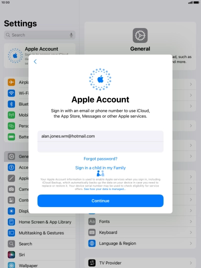 Activate Apple ID on your tablet