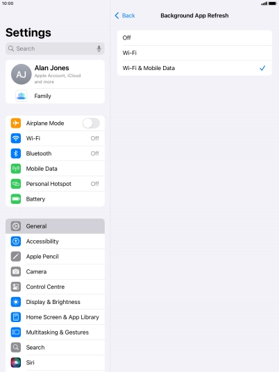 To turn off background refresh of apps, press Off.