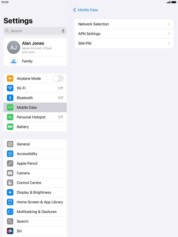 Press Mobile Data.