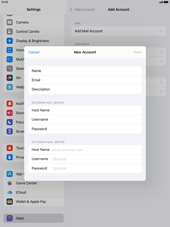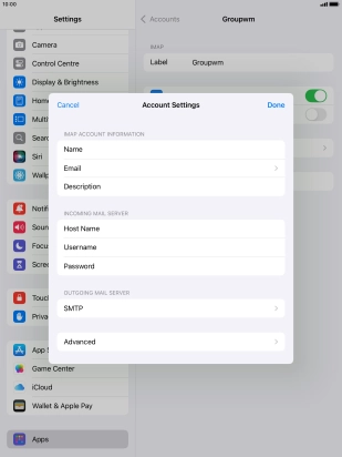 Press Username and key in the username for your email account.