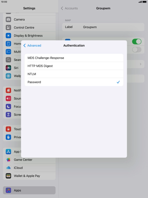 Press Password and key in the password for your email account.