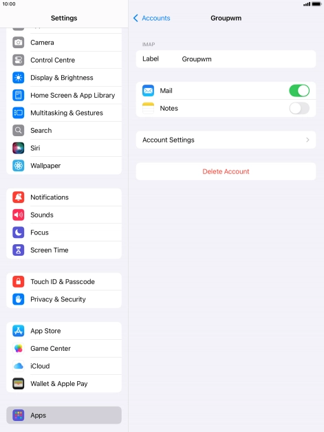 Press the name of the email account you've just set up.