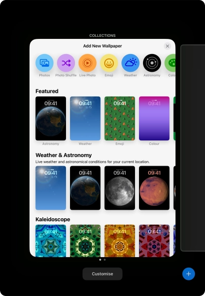Press Customise and follow the instructions on the screen to customise the selected lock screen.