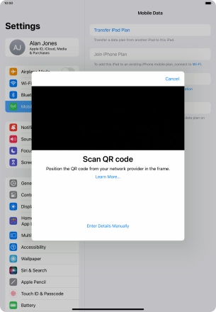 Place the QR code you've received inside the tablet camera frame to scan the code.