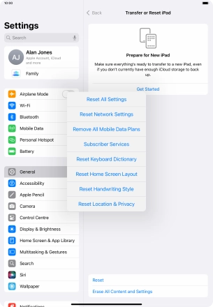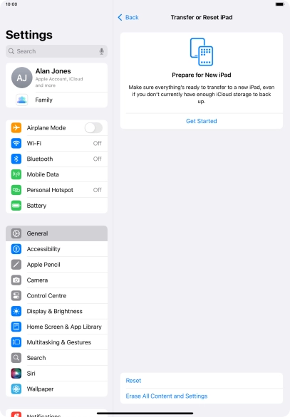 Press Transfer or Reset iPad.