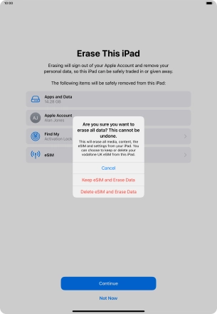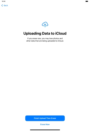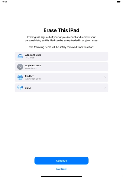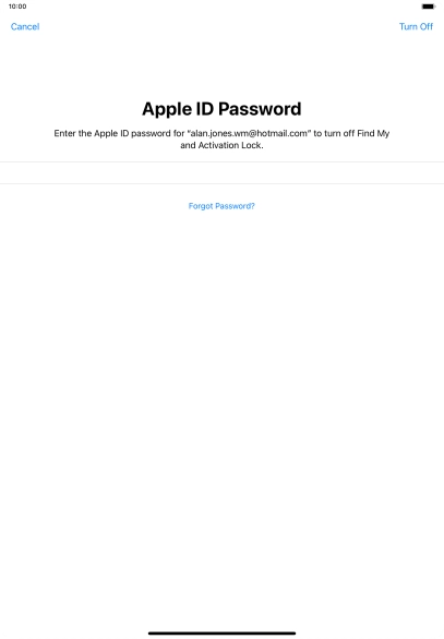 Key in the password for your Apple ID and press Turn Off. Wait a moment while the factory default settings are restored. Follow the instructions on the screen to set up your tablet and prepare it for use.