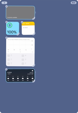 Slide your finger up or down on the screen to see more widgets.